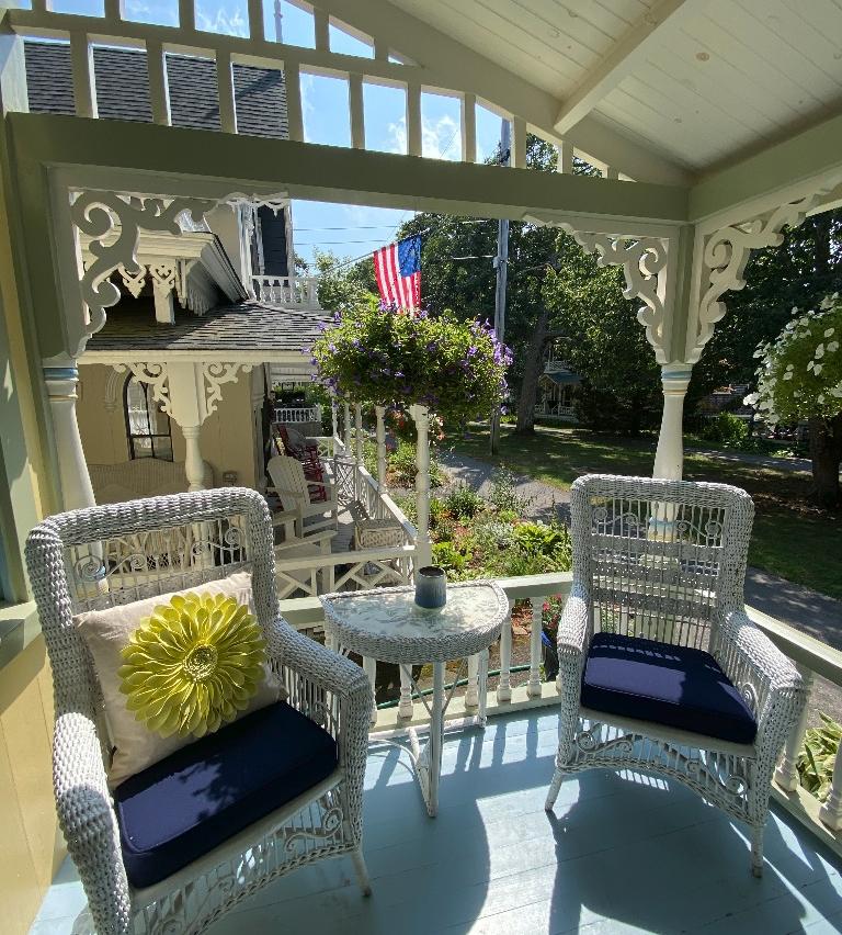 Welcome to Marthas Vineyard! What a wonderful opportunity to bring your family and stay in one of the most stunning, colorful, Victorian Gingerbread Cottage's that sit amongst many, in MV Camp Meeting Association. It is well maintained, and tastefully decorated throughout the home with wonderful spaces in which to gather inside or out. The Parlor is light, airy, which flows to the dining room, and into the newly updated kitchen, and a full bath. There is a lovely screen porch as well, a side yard with extra seating, patio, and a gas grill. The second story leads to three bedrooms, a Master King, with a beautiful, covered balcony, two additional bedrooms, one Queen, and one Full, which all share the guest half bath. Sit in the morning on the wonderful front porch, enjoying morning coffee, read a book, or just enjoy watching the world go by. It's an easy stroll to the Tabernacle, Trinity Park, Circuit Ave, harbor, Ocean Park, beaches, ferry, restaurants, shops, and still much more. The Vineyard has so much to offer, so relax on a sandy beach, go biking, hiking, exploring, or just catch up with family and friends. Looking forward to seeing you